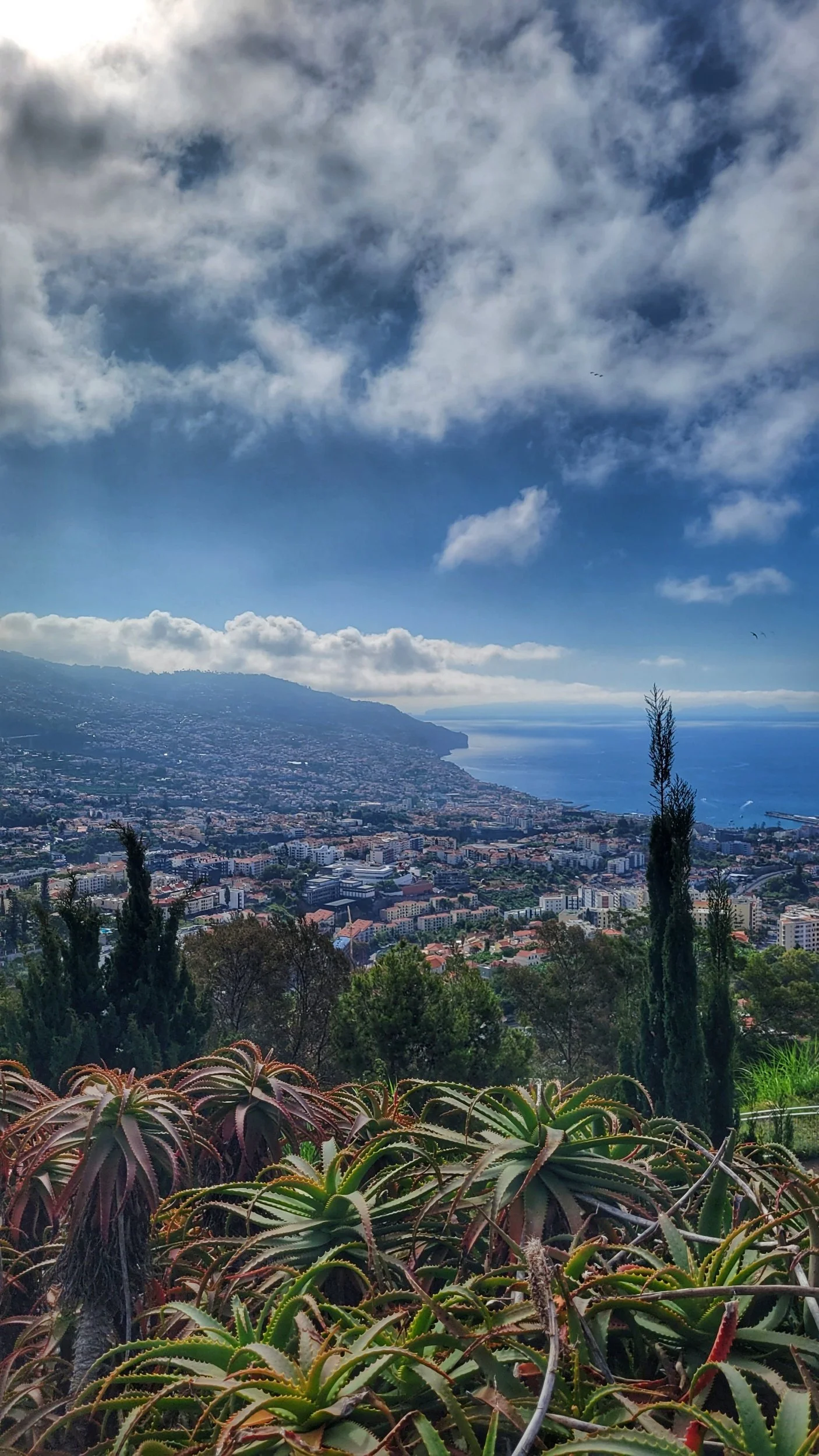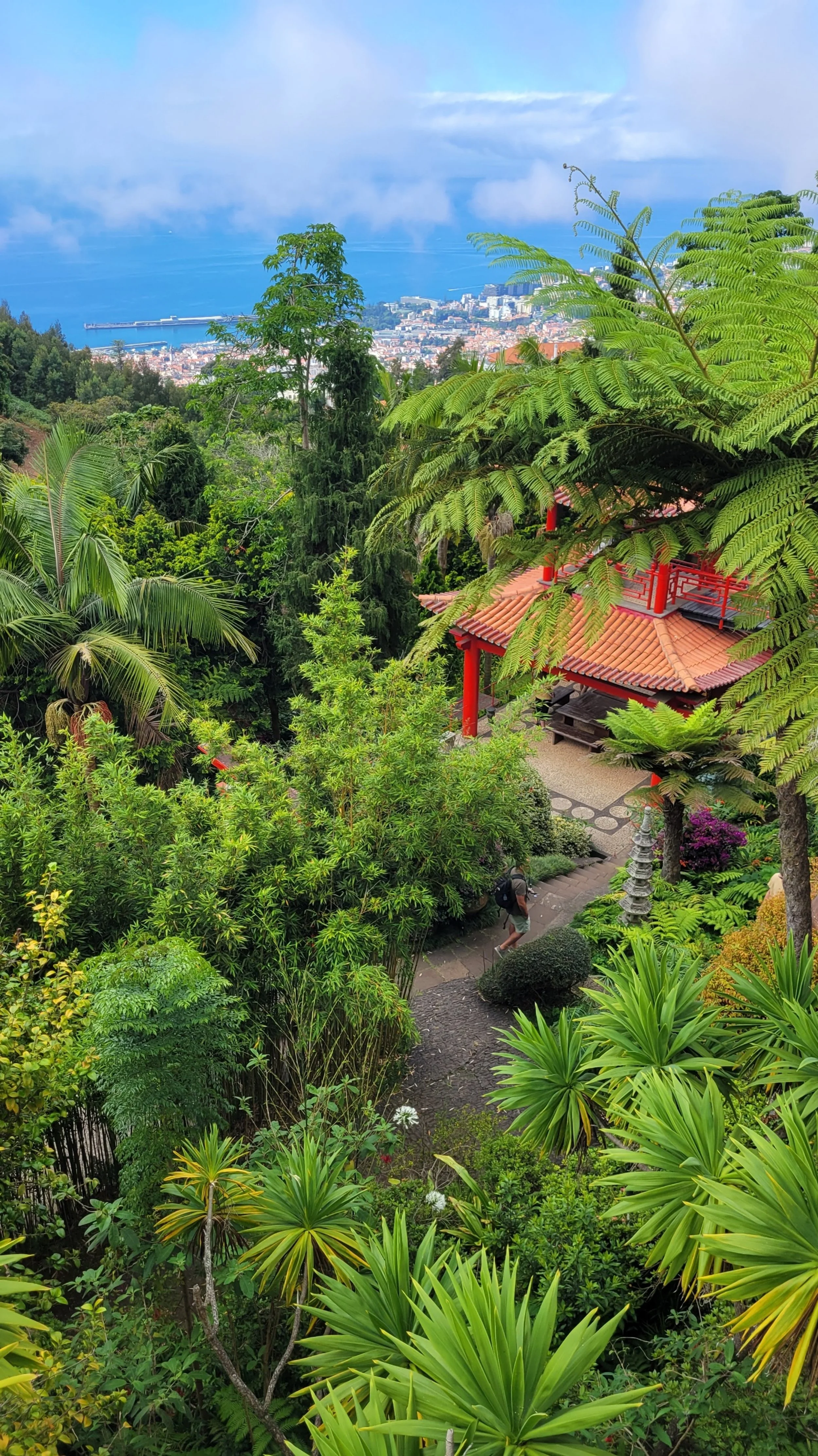 While exploring the gardens, we stumbled upon one of those unexpected travel gems: a small, incredibly welcoming cafeteria tucked into the hillside. It was the perfect place to refuel—with food and wine—while soaking in the view from outdoor tables that looked straight down to the ocean below. We were very high up, which somehow made that glass of wine taste even better. Sitting there, surrounded by flowers and fresh mountain air, with the Atlantic stretching endlessly beneath us, felt like a pause button on the day.