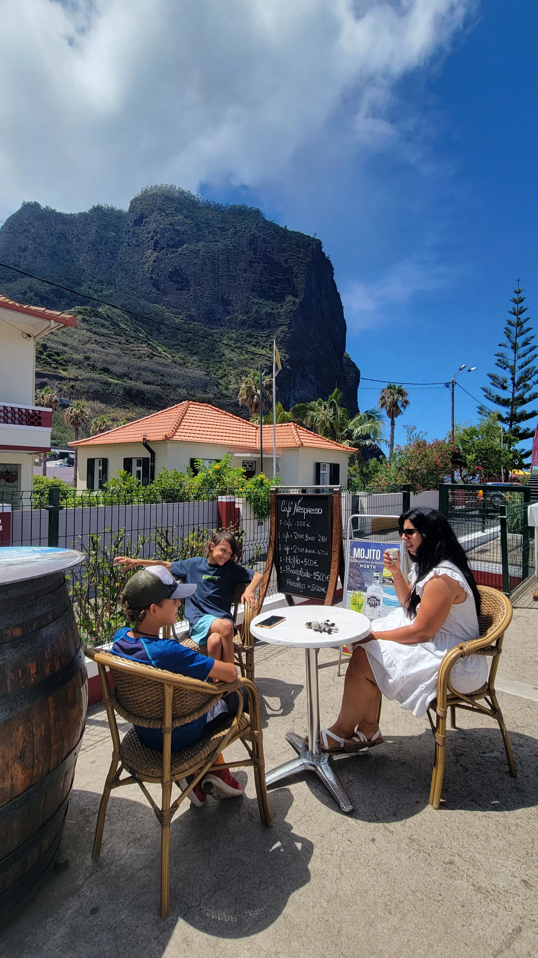 We even made a quick stop for a rum tasting — something Susanna insisted we couldn’t miss. Madeira has a long history of sugarcane production, and traditional sugarcane rum (aguardente de cana) is still produced on the island today. While Chip and I sampled a few varieties, Susanna enjoyed coffee on the terrace with the boys.