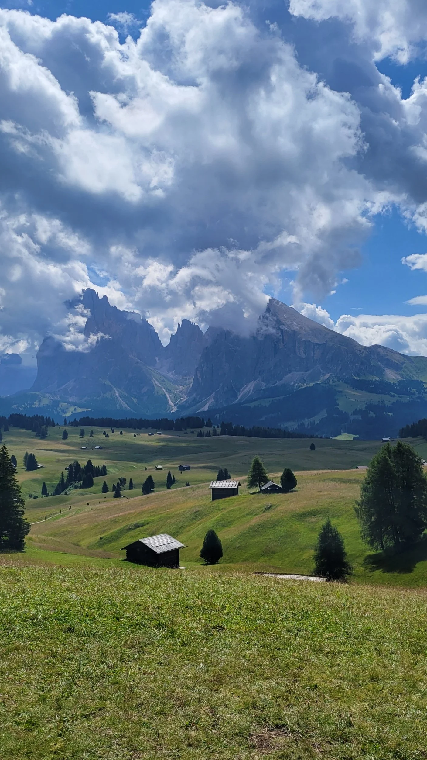 The views of the Dolomites from our windows were worth everything. Towering peaks, soft green slopes, clouds drifting lazily by—we don’t remember the last time we stared out an Airbnb window as much as we did here. Prepare yourselves for a lot of mountain photos. Sorry, not sorry.
