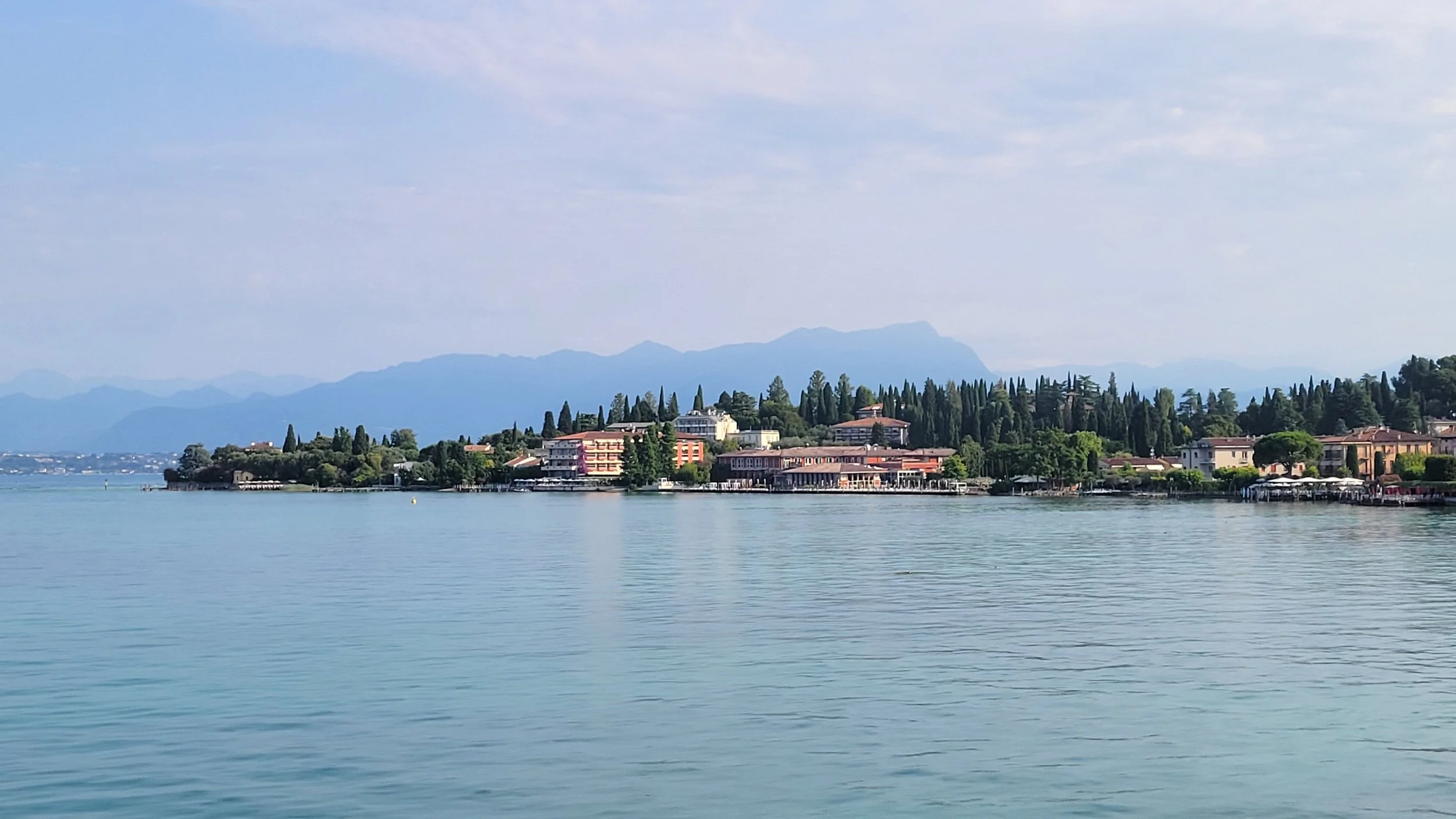 We boarded the train and made our way toward Lake Garda, where we’d be staying for three nights in Desenzano del Garda. The journey was smooth, and once we arrived, we walked the mile downhill toward town and our Airbnb. The first views of the lake from above were stunning—blue water, mountains in the distance, and that unmistakable Italian charm. By the time we reached the center of town, it already felt special.