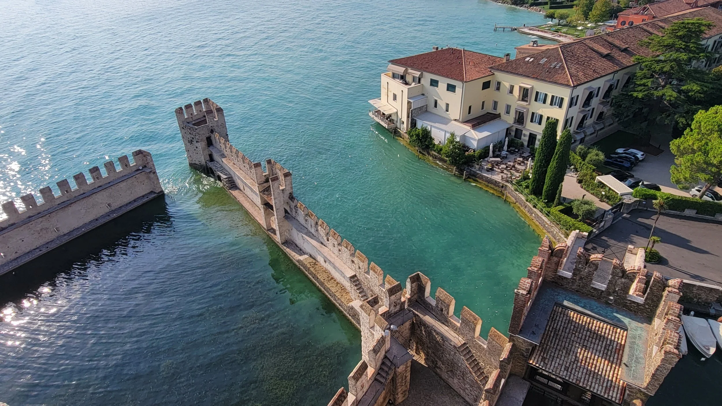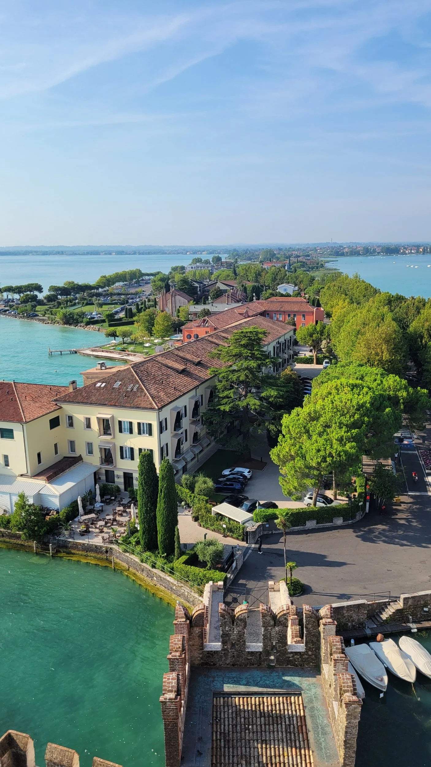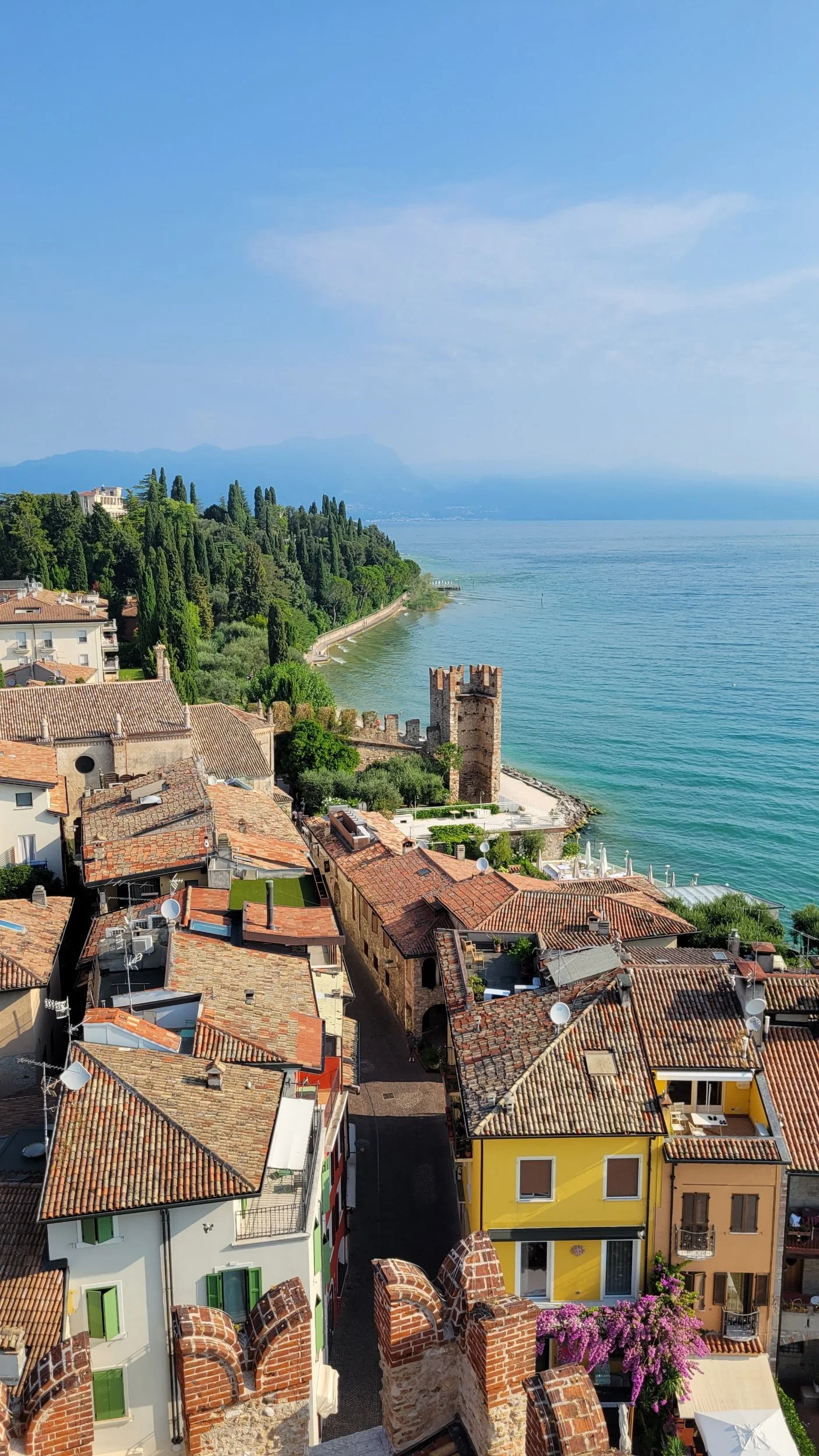 The Scaliger Castle dates back to the 13th century and is one of the best-preserved medieval fortresses in Italy. Surrounded by water and complete with drawbridges, towers, and sweeping views of the lake, it’s easy to imagine its strategic importance centuries ago. We wandered slowly, climbed the towers, and soaked in the views—just us, stone walls, and the lake stretching endlessly in every direction.