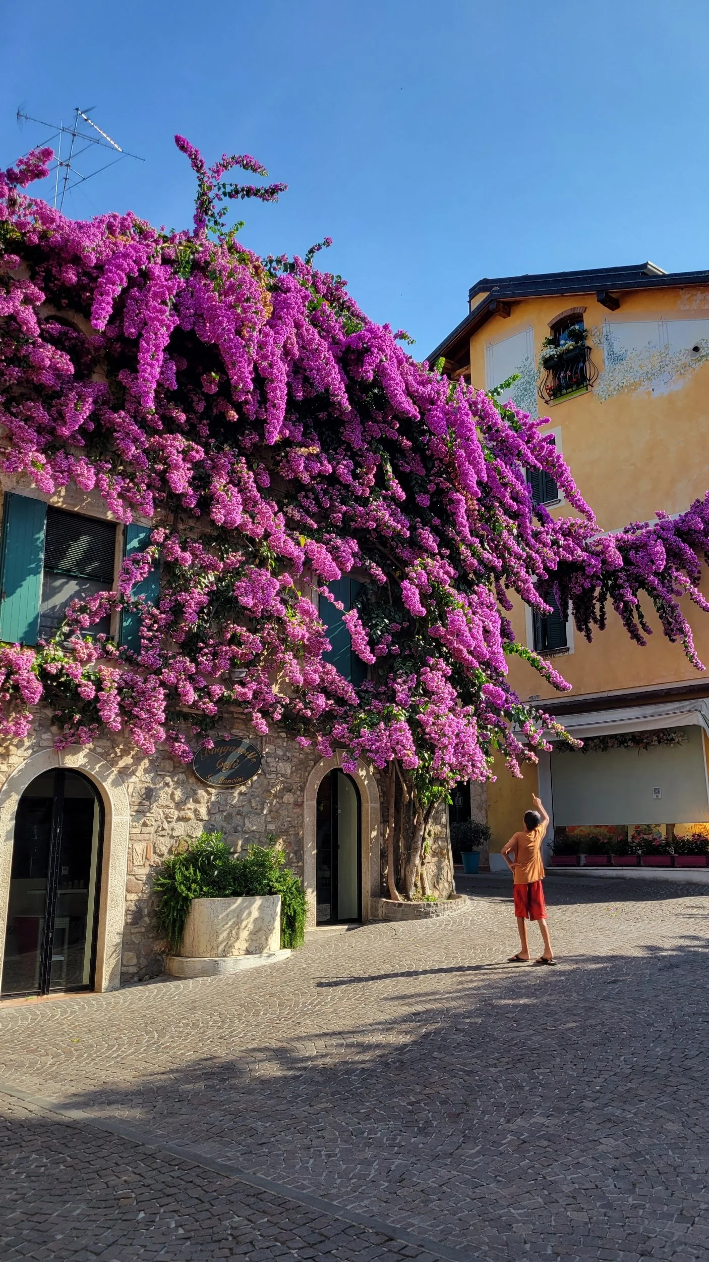 On our way back, we stopped for lunch in an air-conditioned café (a lifesaver), then spent the last hour before our ferry wandering the pedestrian streets—admiring buildings draped in pink flowering vines, cooling off with gelato cones, and popping into small artisan shops.