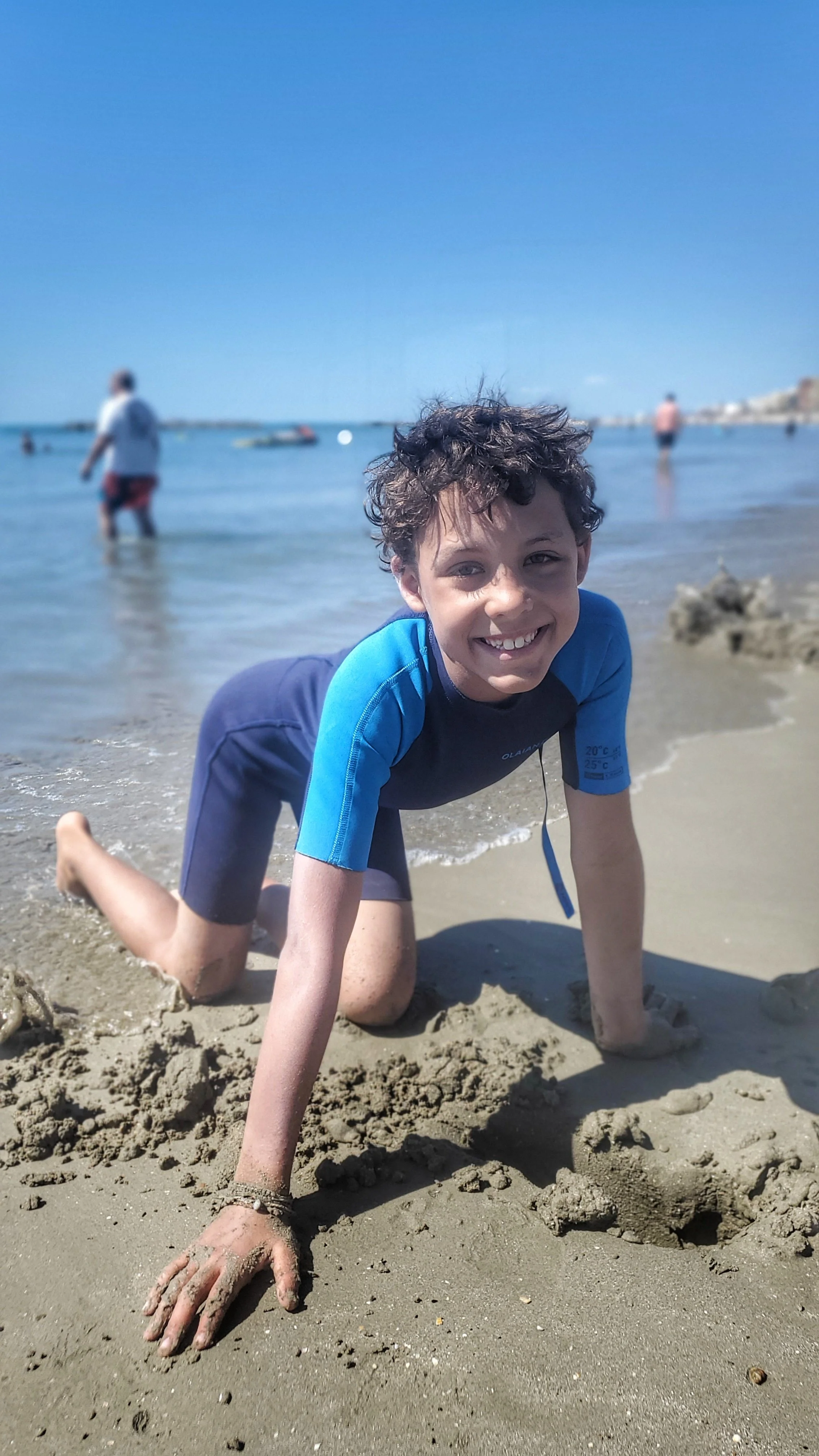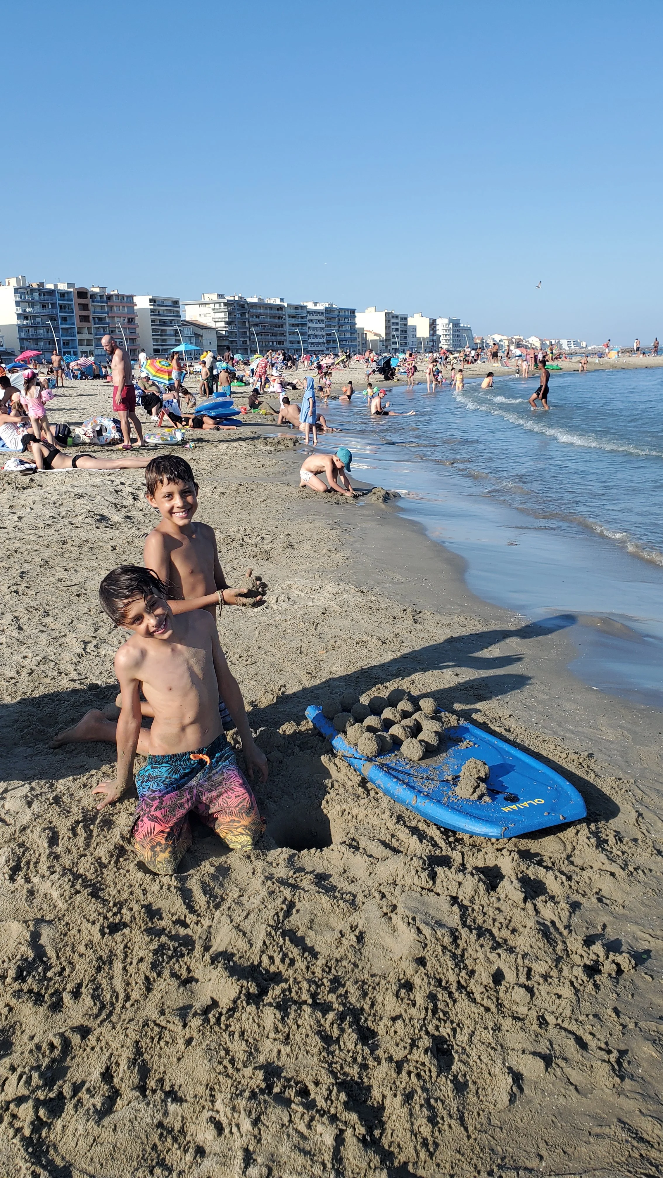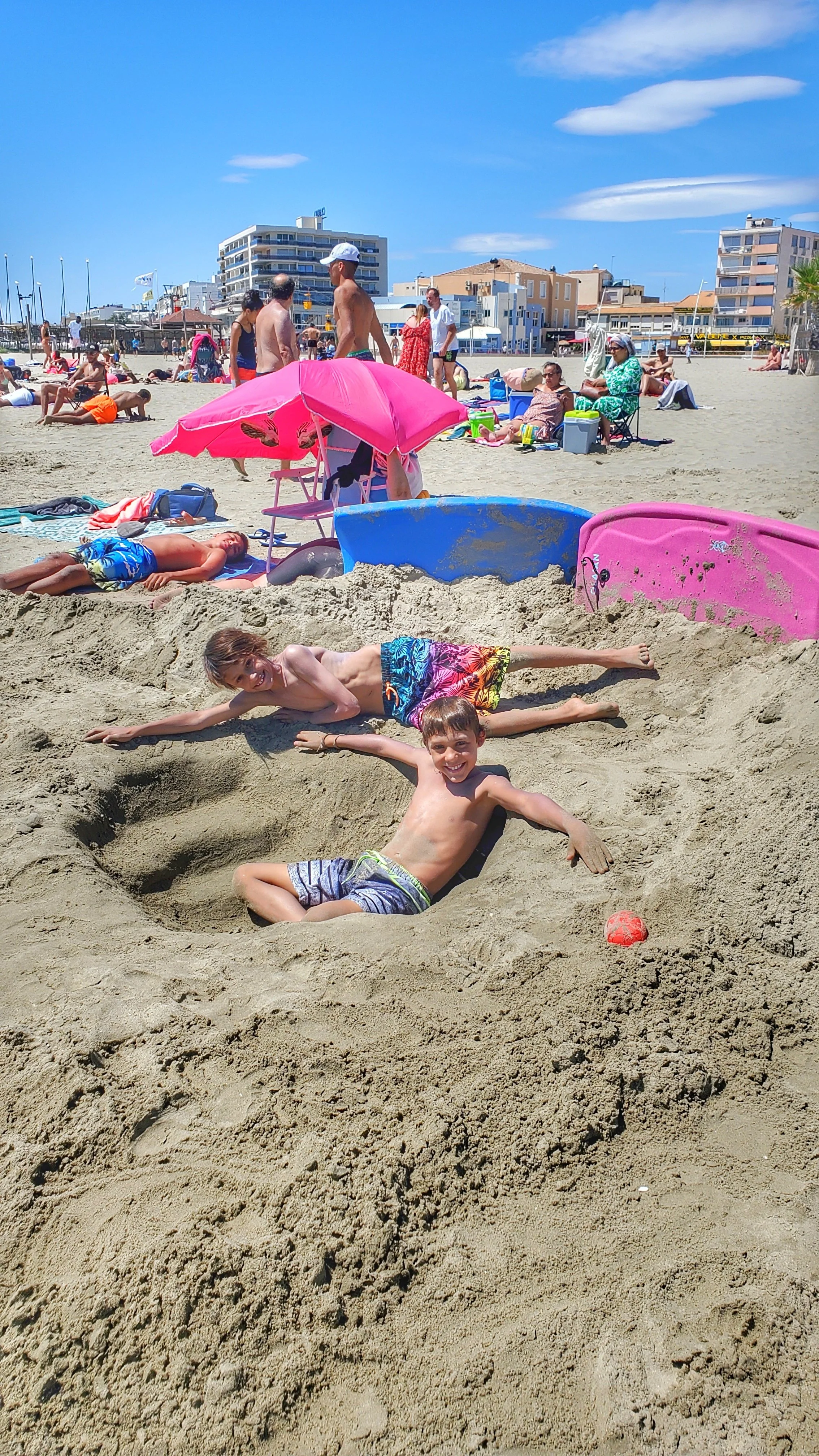 Our days in Palavas quickly fell into a blissful routine: beach, swim, repeat. The boys spent hours building elaborate sand creations (you’ll see those in the video!), while I rotated between beach workouts, swimming, and soaking up the sun.