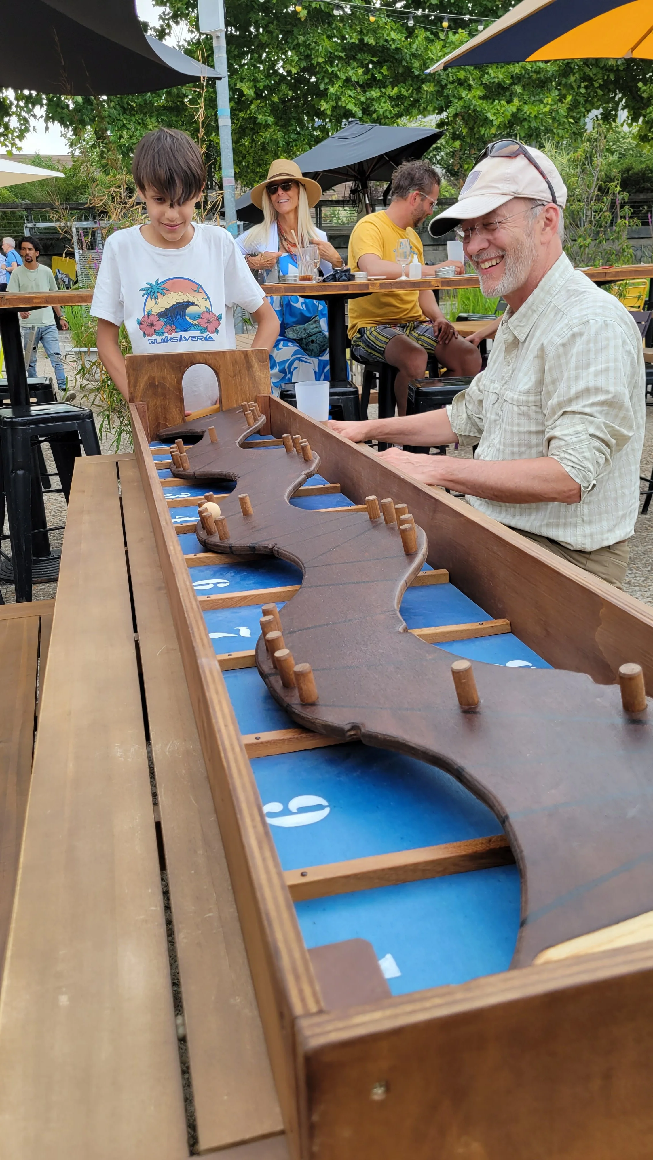 We stayed for a while, chatting with locals and soaking in the community vibe, before wandering over to a nearby riverside bar. There, we discovered a collection of beautifully handcrafted wooden games lining the waterfront. We met the creator, played for hours, and enjoyed food and drinks as the afternoon slipped by.