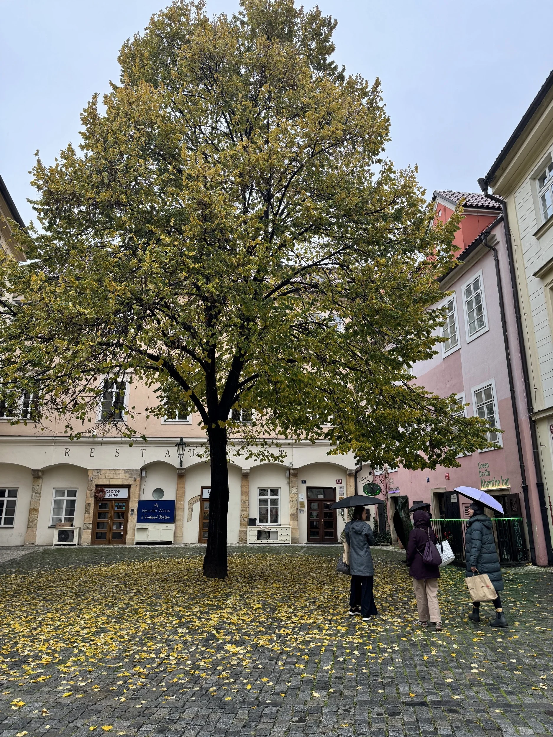 But leave we did—umbrellas up—because we had somewhere very Prague to go.