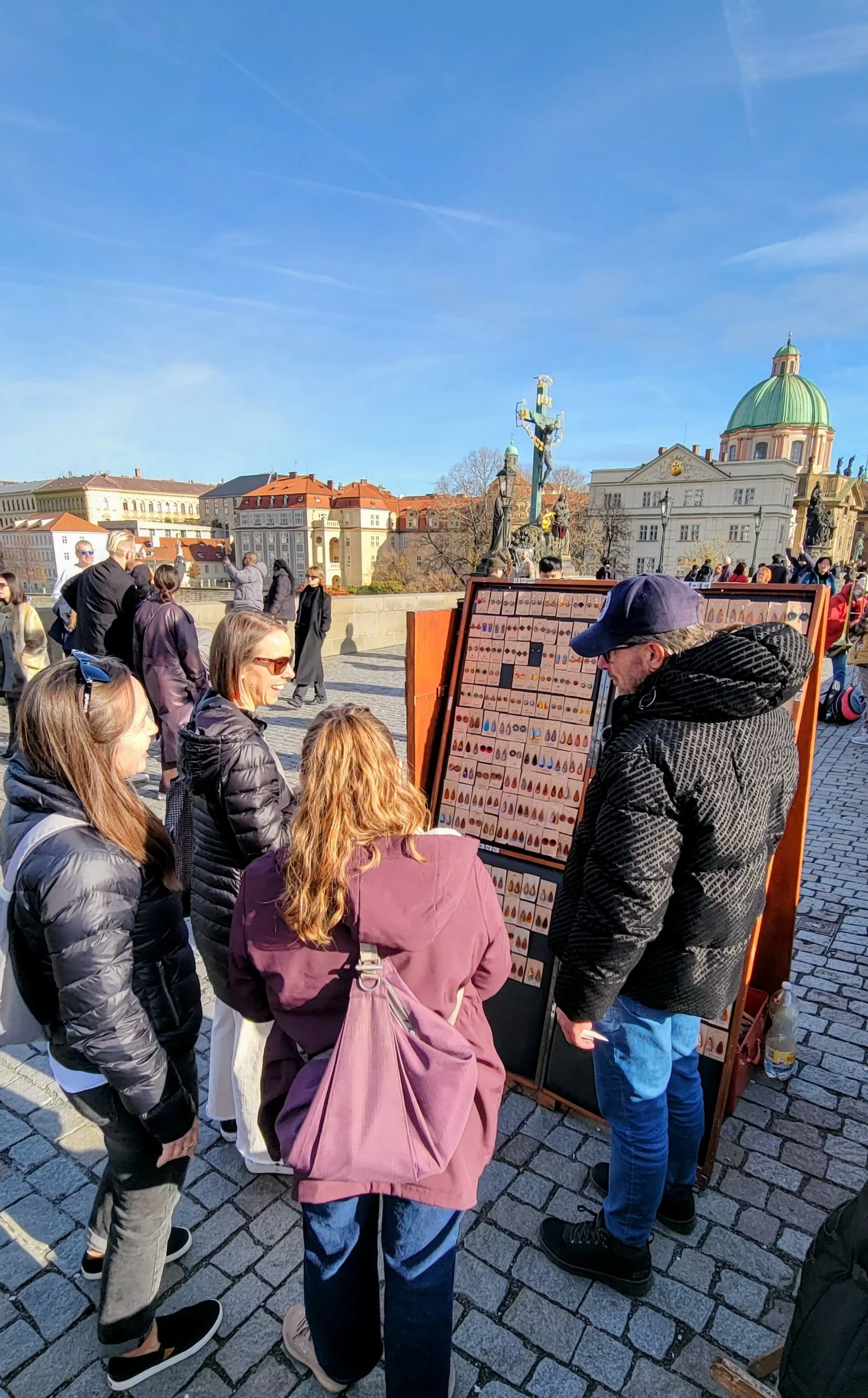 Even though we’d crossed the Charles Bridge countless times already, this time we slowed down and really soaked it in. Vendors lined the bridge selling art, jewelry, and handmade goods, while musicians played everything from classical violin to modern covers. We got a later start, so it was definitely busy—but instead of feeling overwhelming, it added to the buzz. Prague was alive.