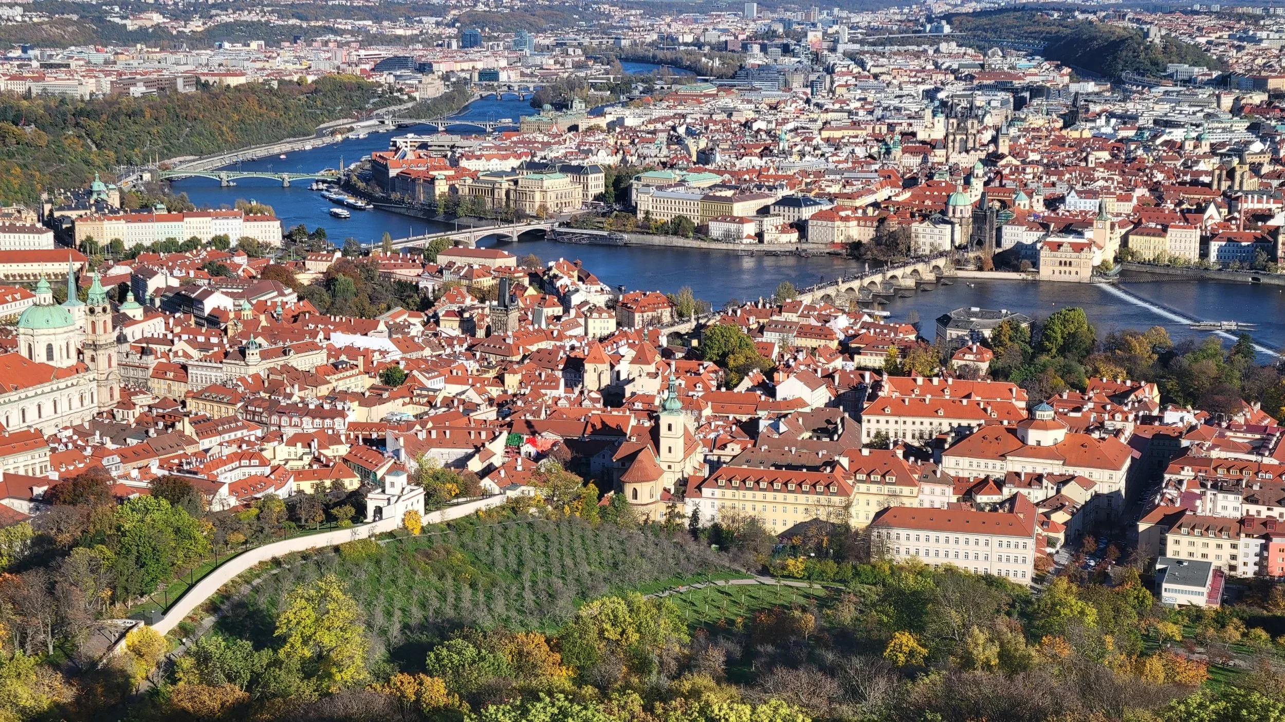 From the top of Petrin Tower looking out towards the Vlatva River
