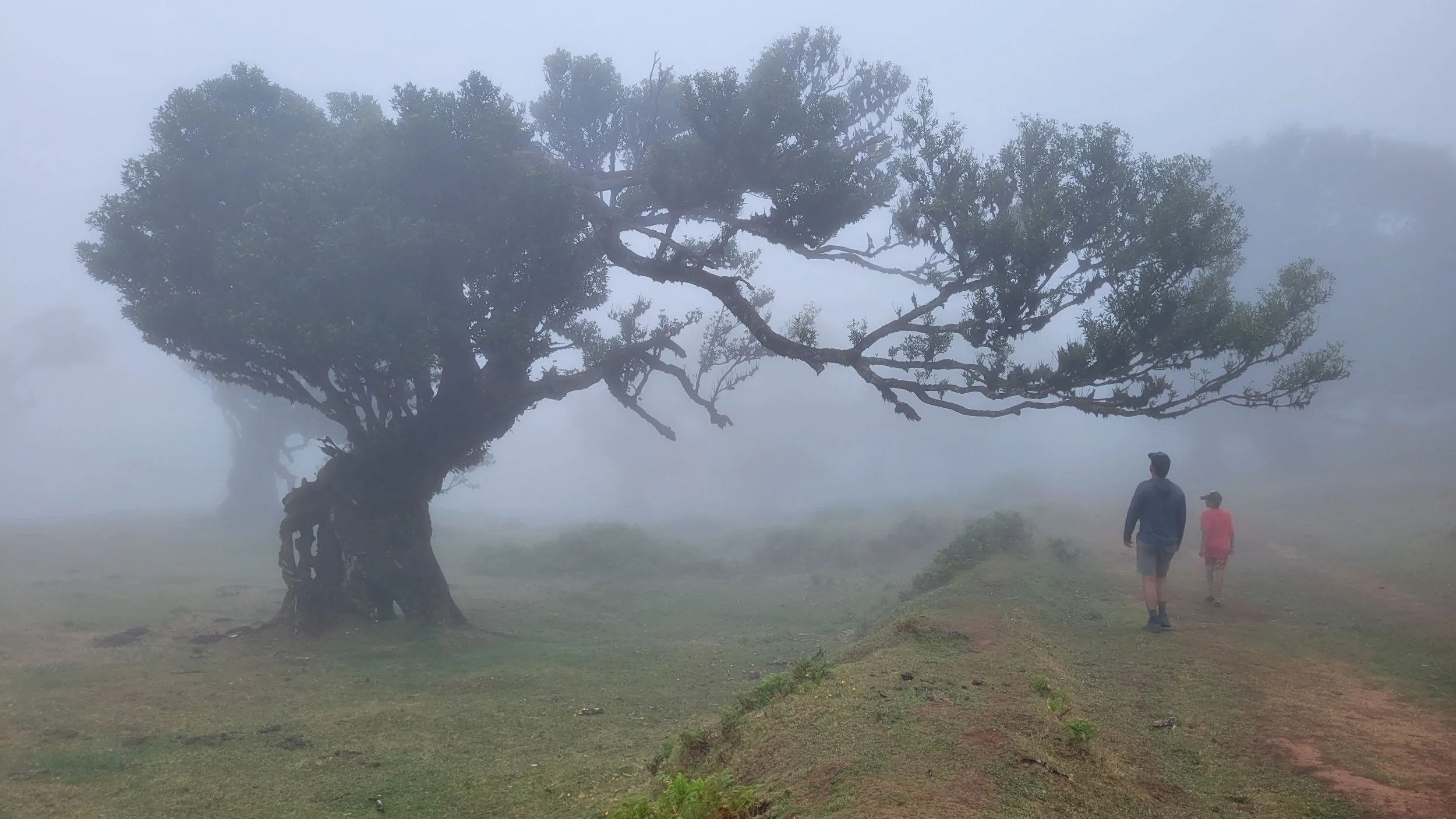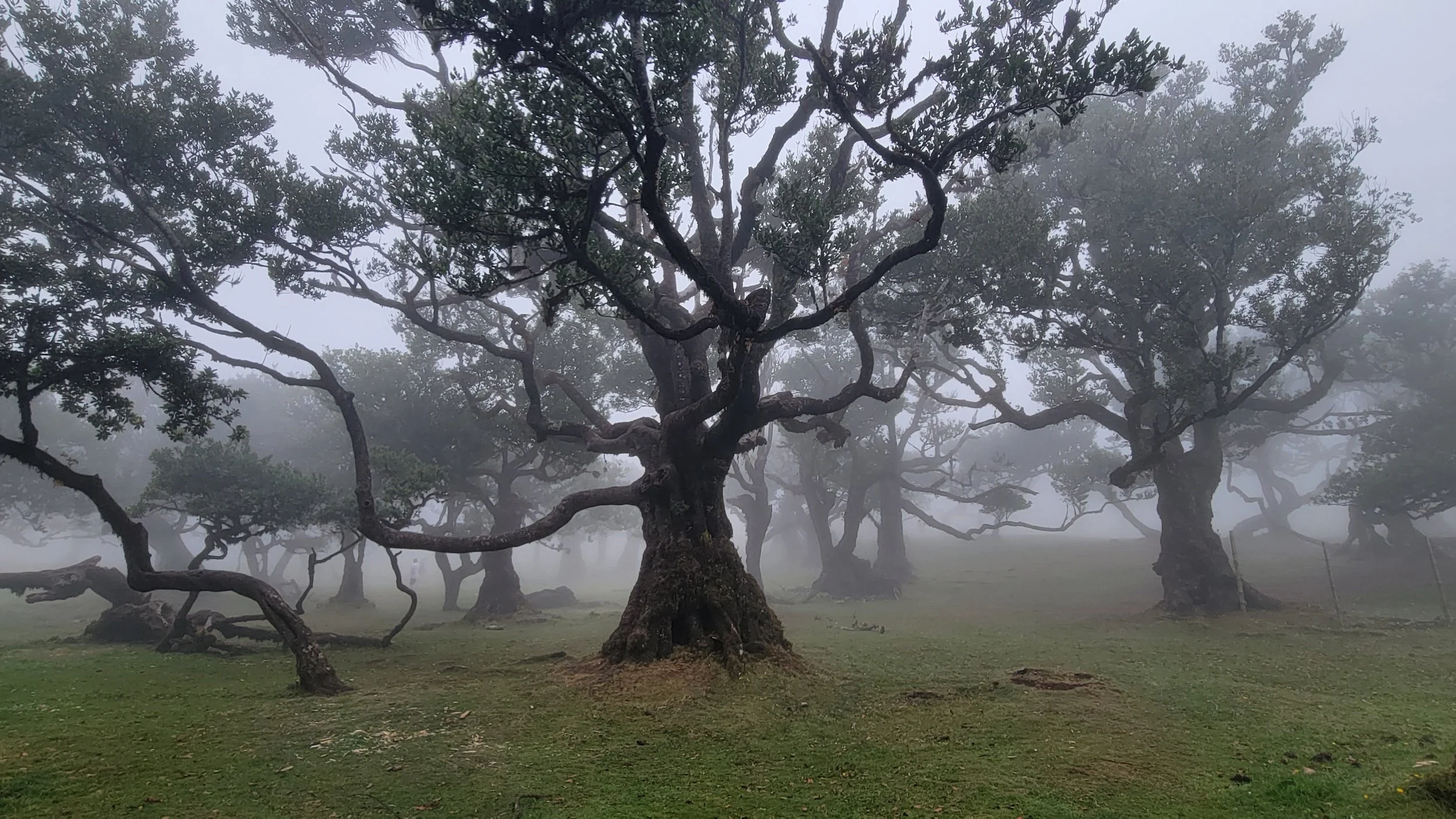 Fanal sits high on the Paul da Serra plateau, where ancient laurel trees — some over 500 years old — twist and stretch across rolling green meadows. The forest is part of Madeira’s UNESCO-listed Laurisilva, a rare subtropical rainforest that once covered much of Southern Europe. Fog wrapped itself around the trees, softening their outlines. Gnarled branches reached sideways instead of up. Moss clung to trunks. The silence was thick and damp and magical.