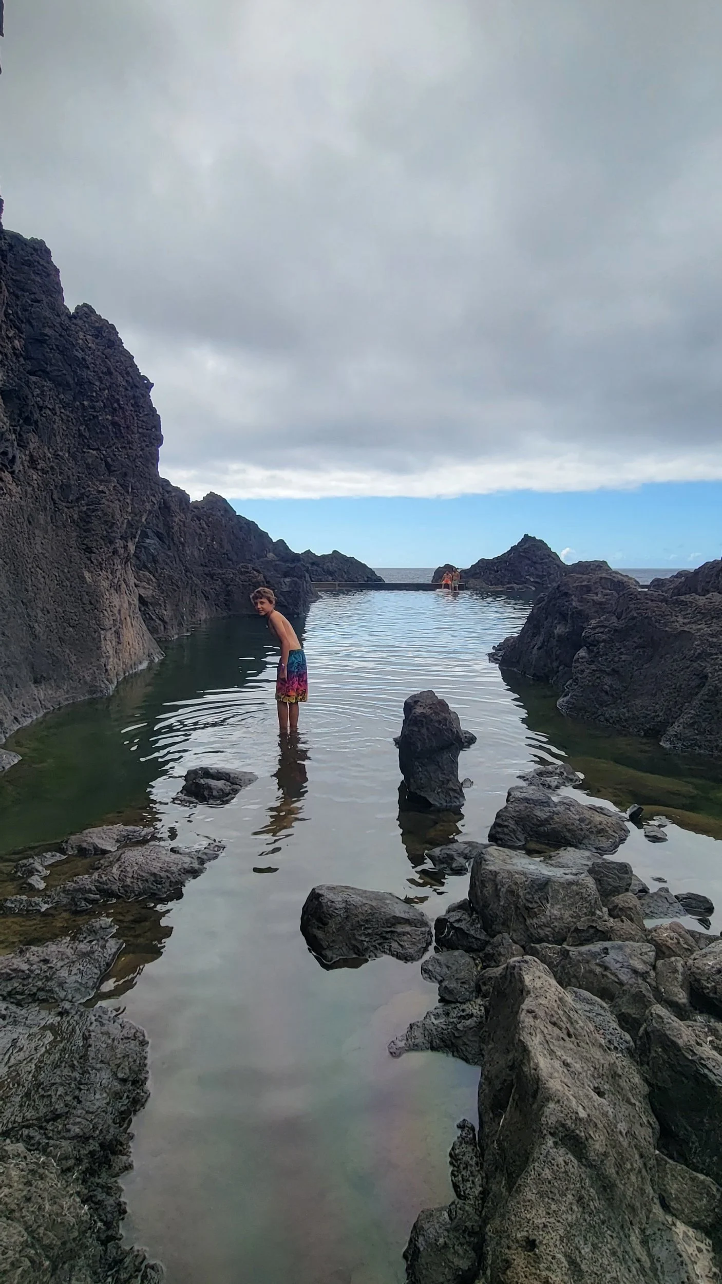 One of the places we were excited to visit was the natural volcanic swimming pools of Piscinas Naturais do Seixal. These pools formed when ancient lava flows created natural rock basins along the shoreline, allowing calm Atlantic seawater to collect safely inside. Framed by black lava rock with the mountains rising behind them, the pools are one of the most scenic swimming spots on the island. It was a little too chilly to fully swim the day we visited, but we wandered through the rocks and waded into the clear water, soaking in the scenery.