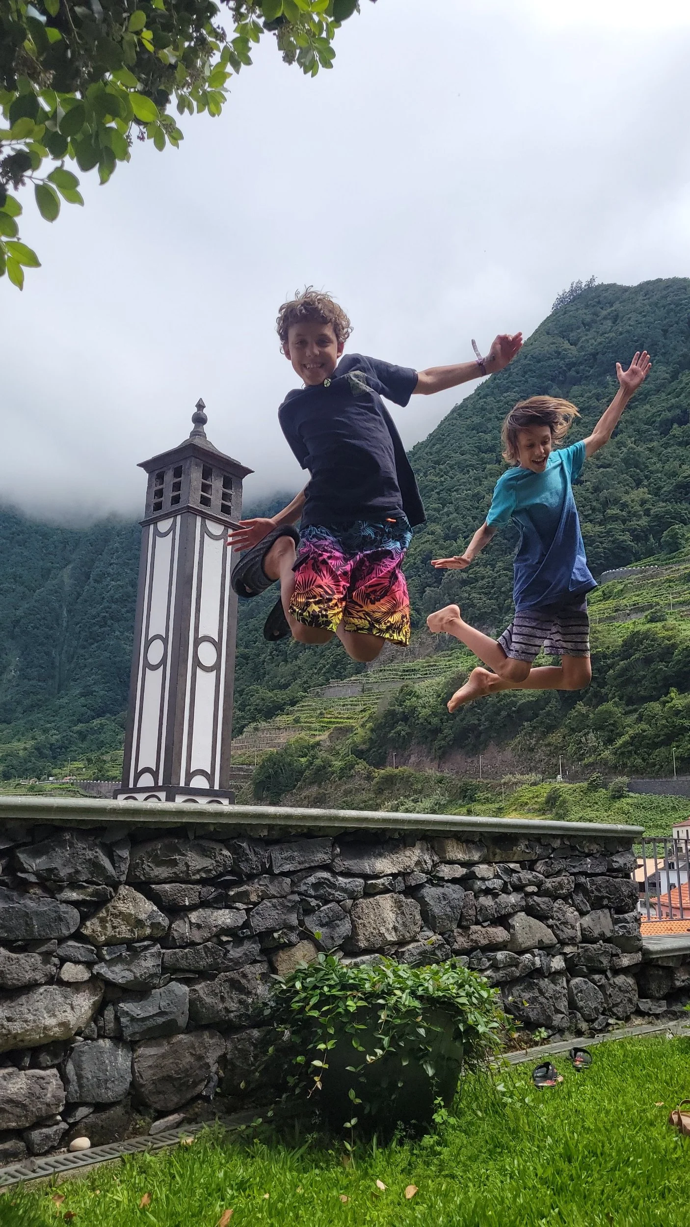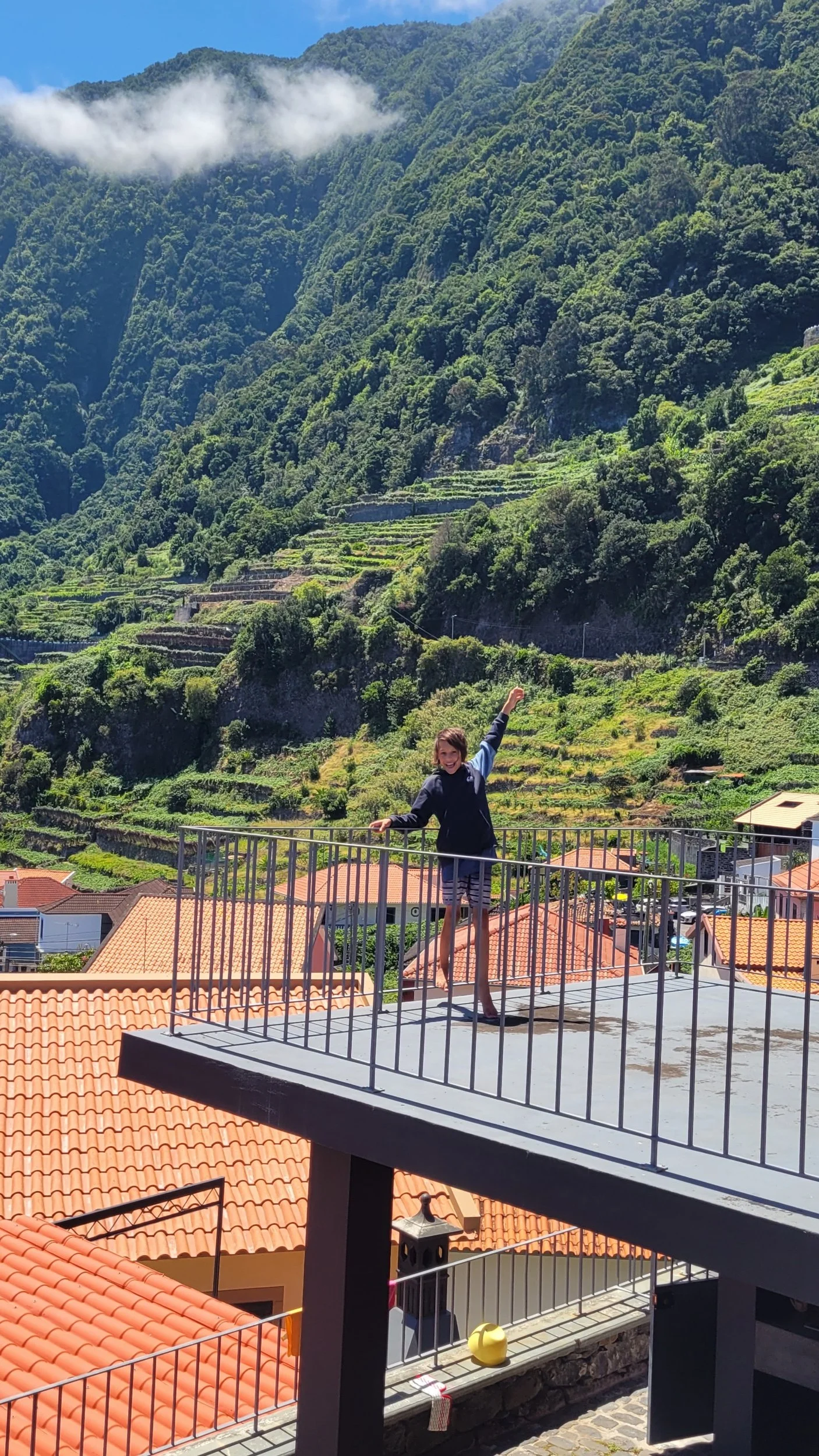 The boys standing on our rooftop balcony in Seixal, Madeira