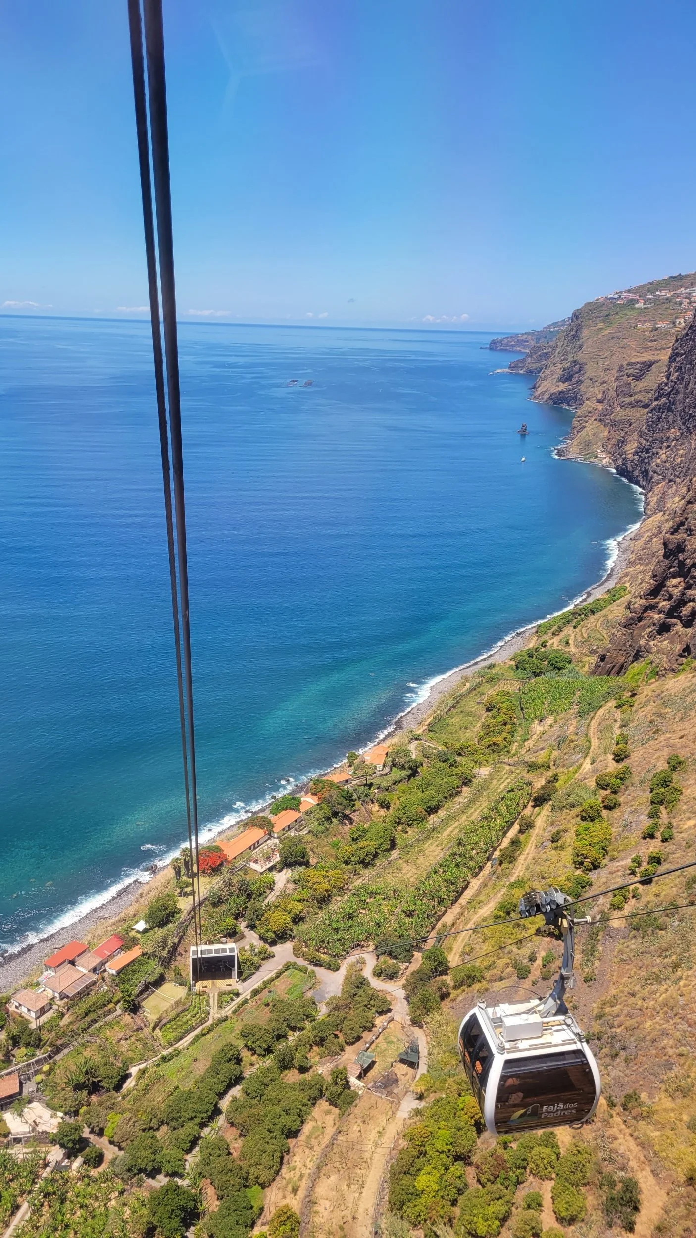 After descending down the opposite side of the mountain after Fanal, we had arrived on the southern coast of Madeira at the Fajã dos Padres Cable Car. Again, Susanna instructed us to go on, but this time we were going down. This may be one of the steepest cable cars in the world, dropping nearly 300 meters (about 1,000 feet) down a vertical cliff face to a tiny strip of land wedged between towering rock walls and the Atlantic Ocean. As the car tilted over the edge and began its descent, I wasn’t sure whether I was holding my breath from fear or awe. Probably both.