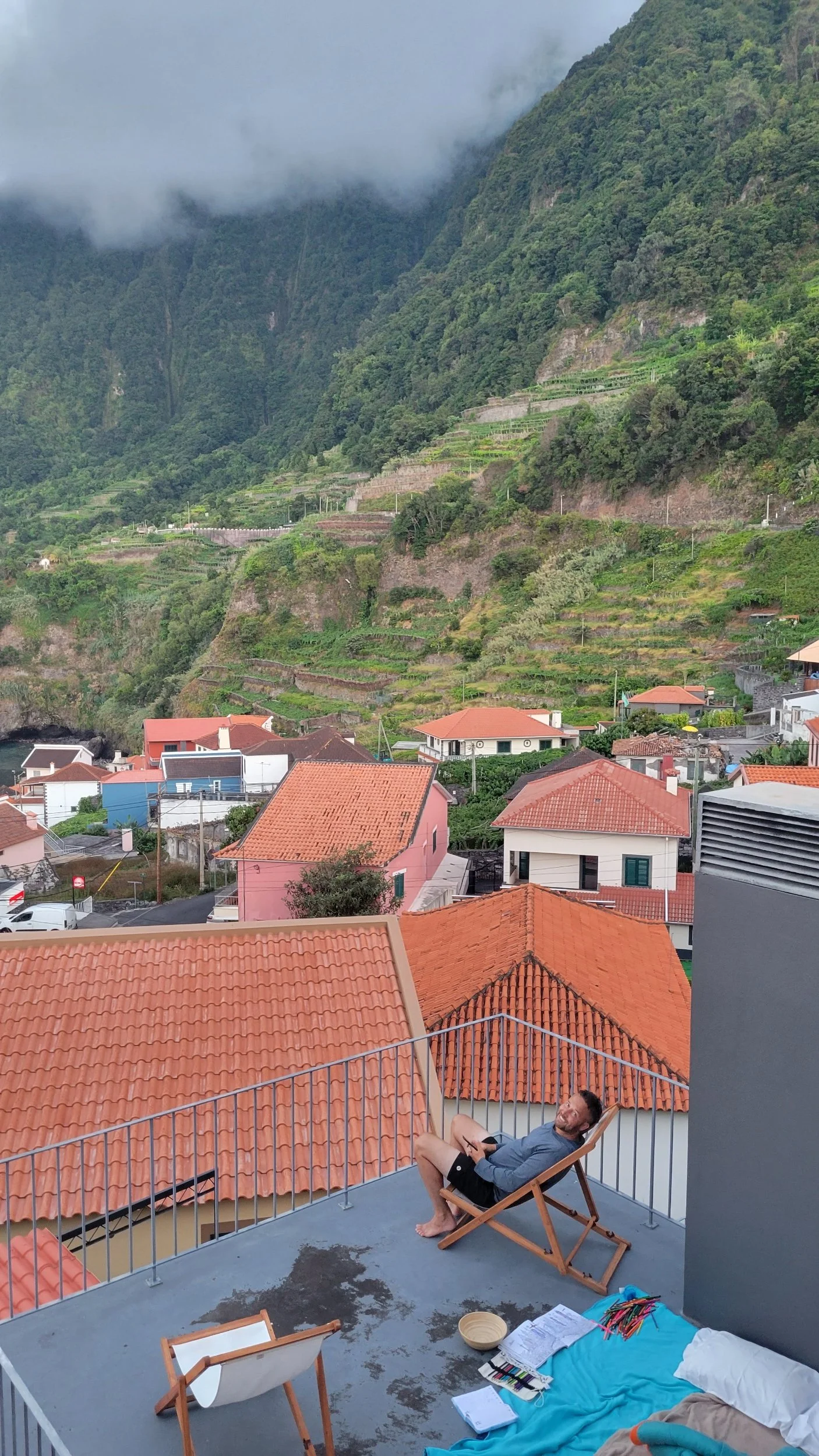Our final days in Seixal slowed beautifully. Beach afternoons, island walks through narrow village roads, coffee on the porch overlooking the ocean, card games and chess in the evenings, and wandering down to the black sand beach whenever we felt like it.