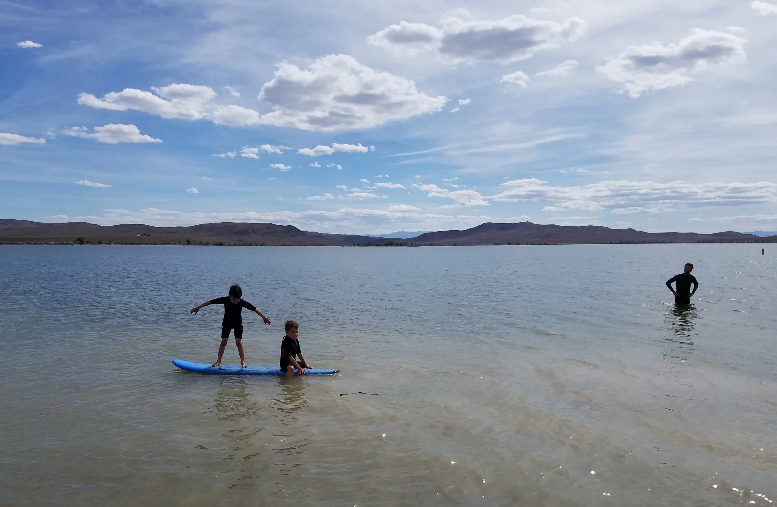 Testing out the new wetsuits at our campsite at Lahontan State Rec Area