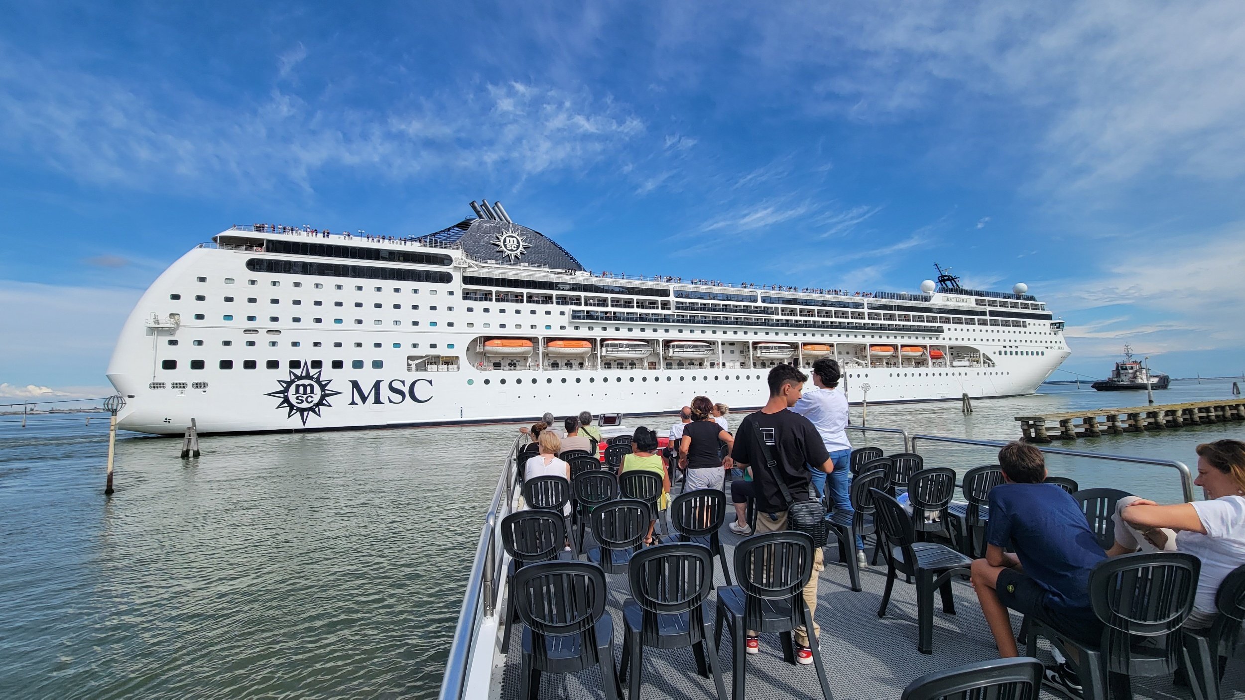 Before entering the Venice waterway, a giant cruiseship passed us by
